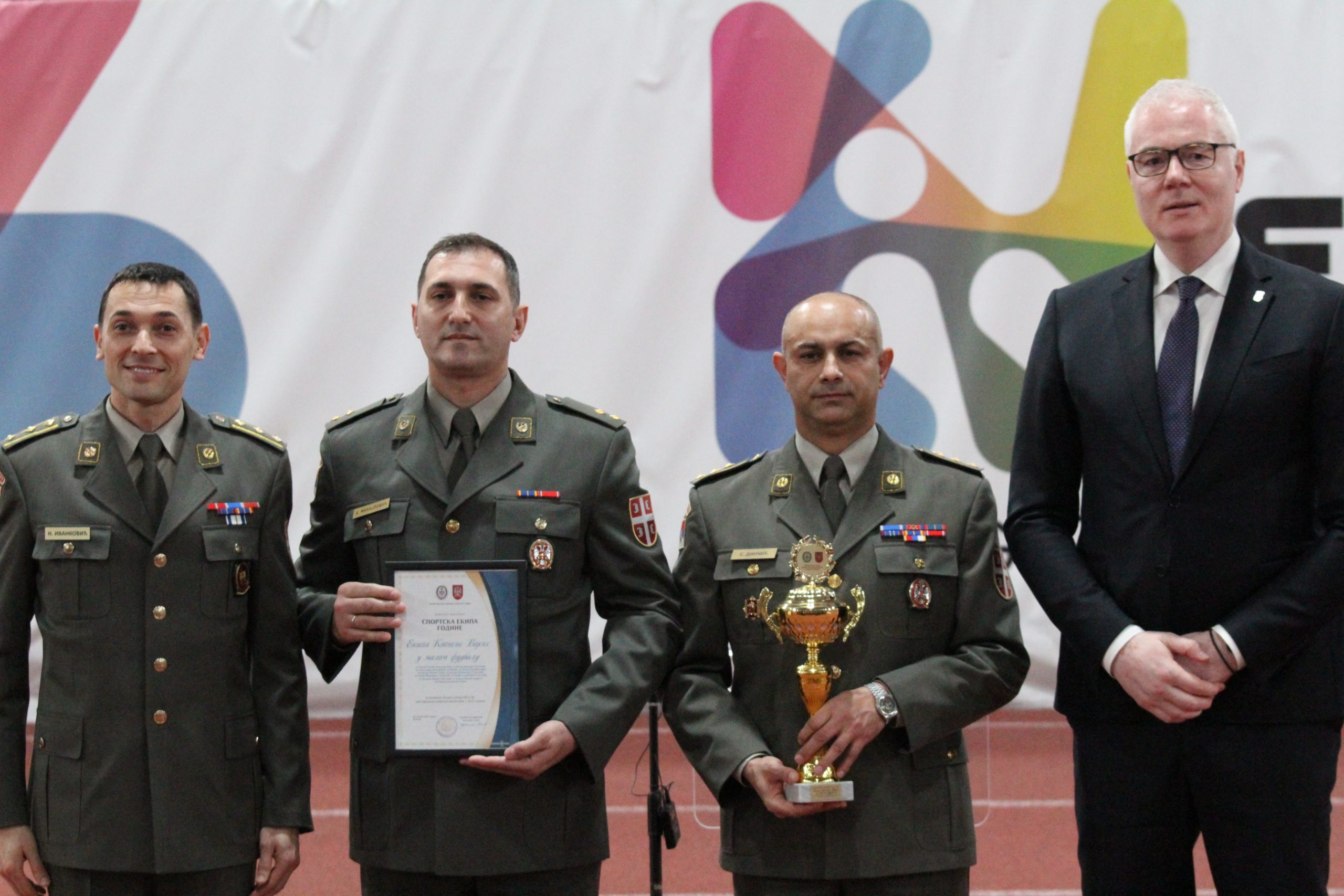 Trofej za ,,Sportsku ekipu godine” pripao je ekipi Kopnene vojske u malom fudbalu. Njima je priznanje uručio predsednik Olimpijskog komiteta Srbije, gospodin Dejan Tomašević.