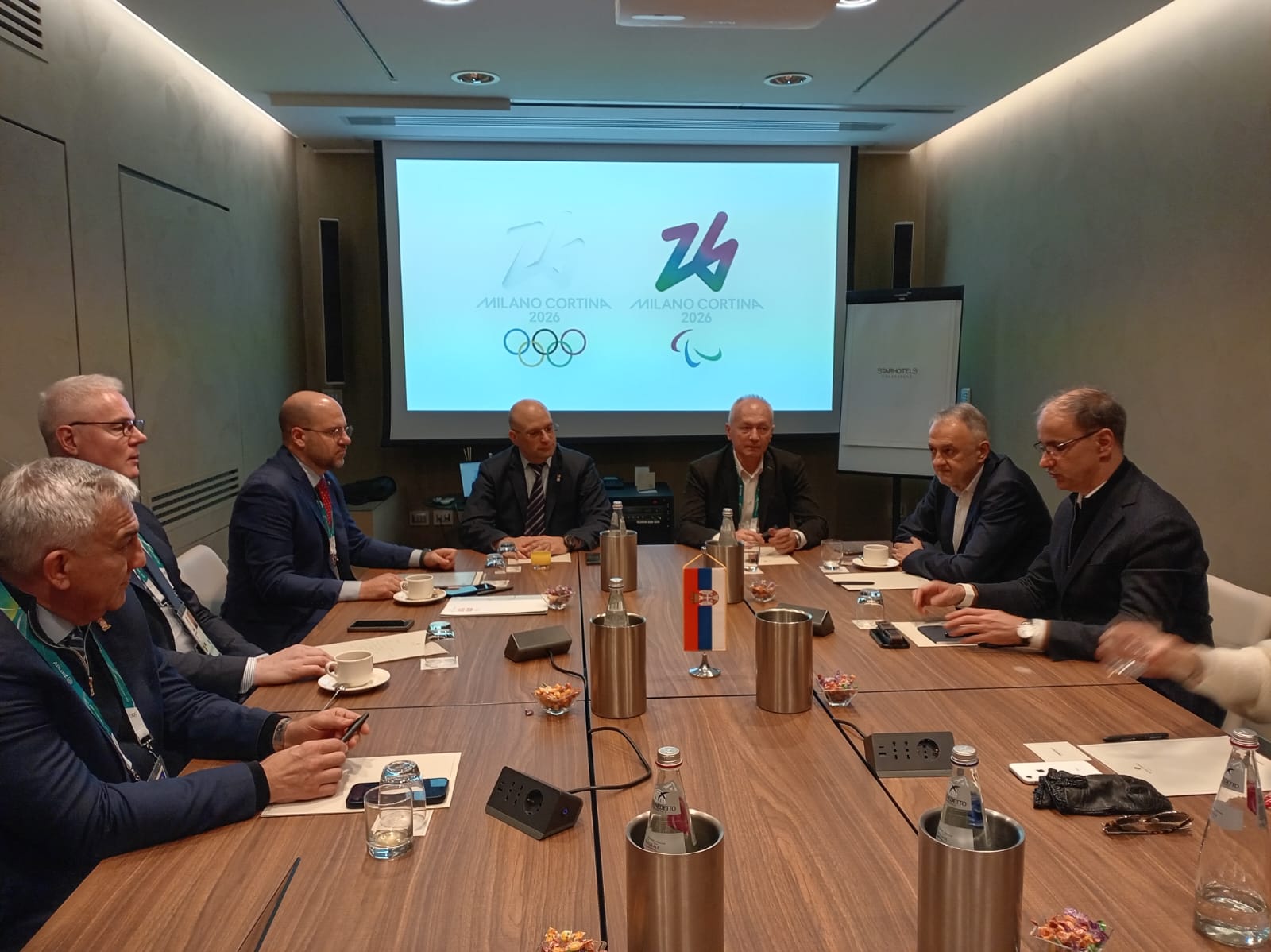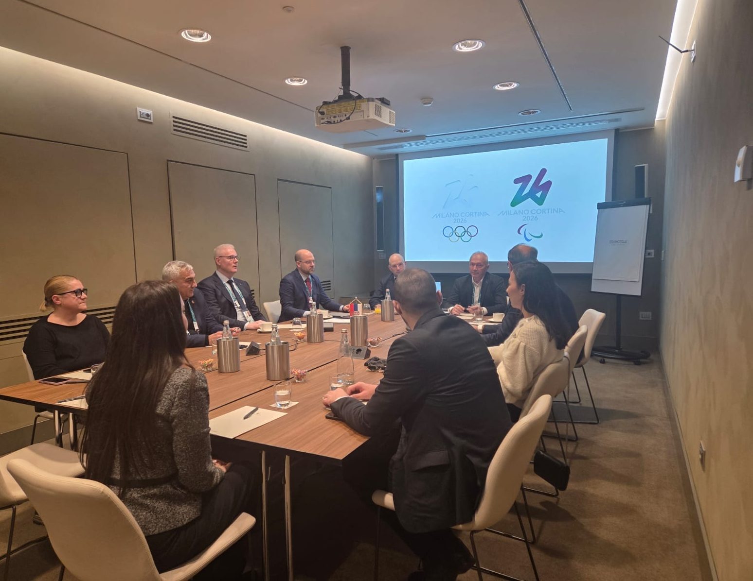 U okviru radnih aktivnosti pred večerašnje otvaranje 25. Zimskih olimpijskih igara Milano-Kortina 2026, predsednik Olimpijskog komiteta Srbije Dejan Tomašević i predsednik Vlade Republike Srbije prof. dr Đuro Macut, kao i ministar sporta Zoran Gajić, zajedno sa svojim timovima, održali su sastanak u Milanu!
