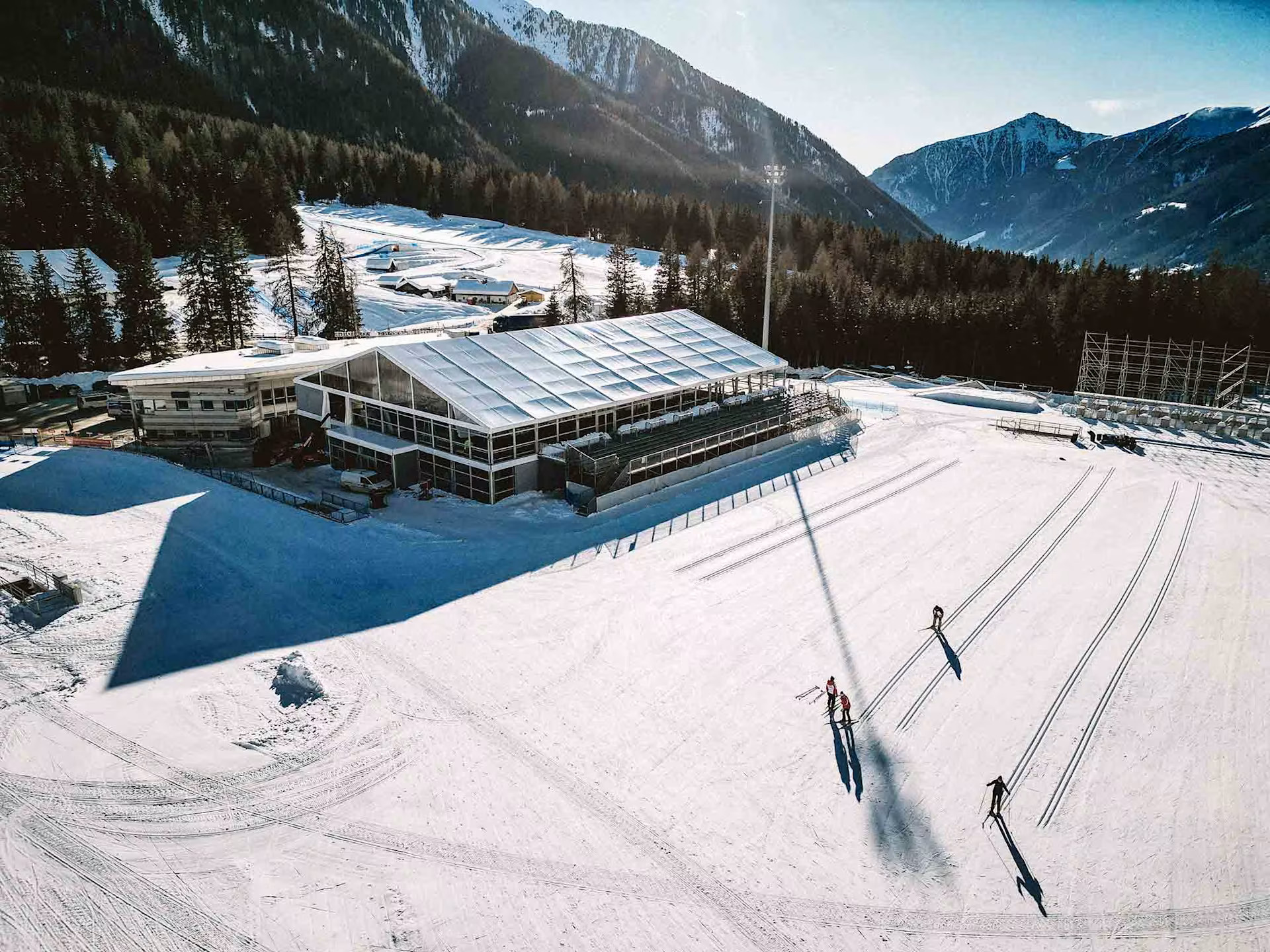 Borilište sa najvećim kapacitetom na Igrama, nedavno renovirana i domaćin biatlonskih takmičenja, moći će da primi do 19.000 gledalaca. Ova arena je domaćin međunarodnih događaja još od 1971. godine i smeštena je među veličanstvenim alpskim vrhovima u blizini austrijske granice.