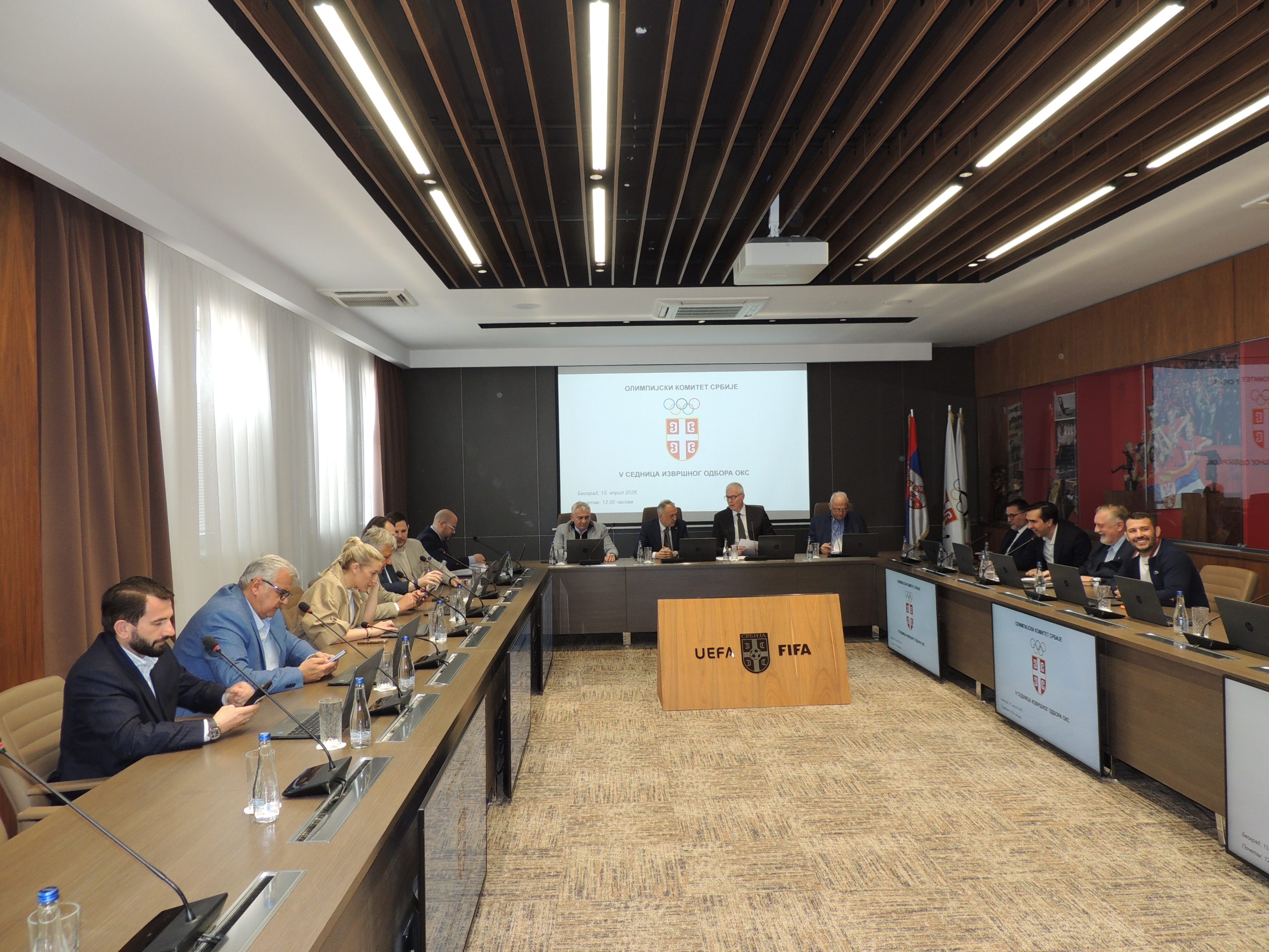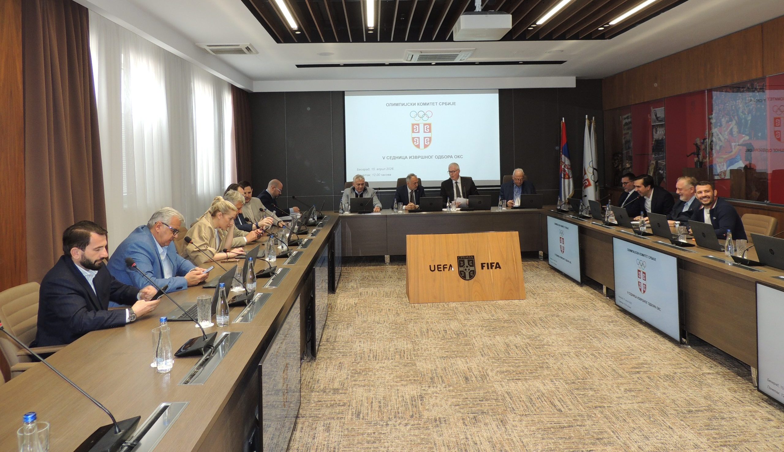 U Sportskom centru Fudbalskog saveza Srbije danas je održana V sednica Izvršnog odbora Olimpijskog komiteta Srbije. Današnjoj sednici prisustvovao je i gospodin Nenad Lalović, član Međunarodnog olimpijskog komiteta, kao i ministar sporta u Vladi Republike Srbije, gospodin Zoran Gajić.